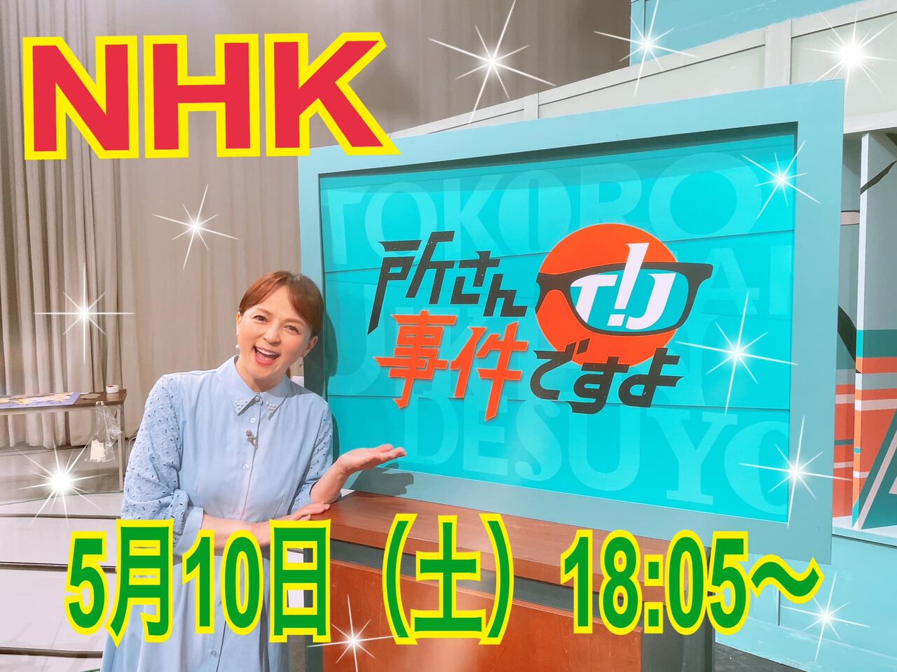 5月10日(土)18:05から放送のNHK「所さん!事件ですよ」に出演させていただきます!